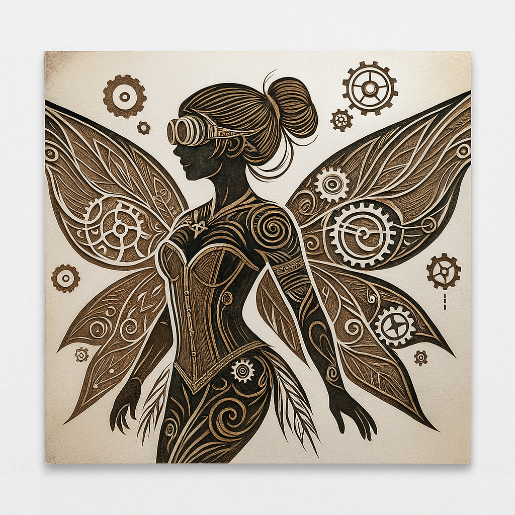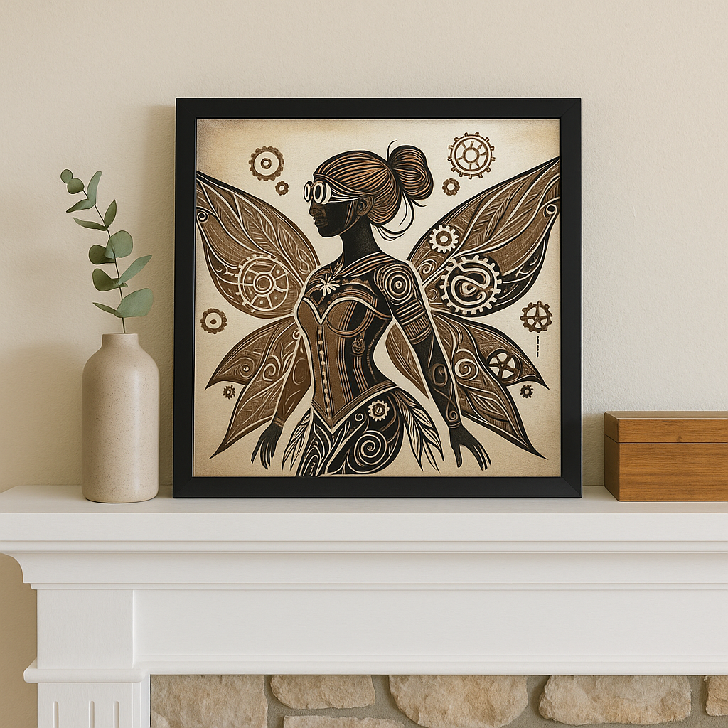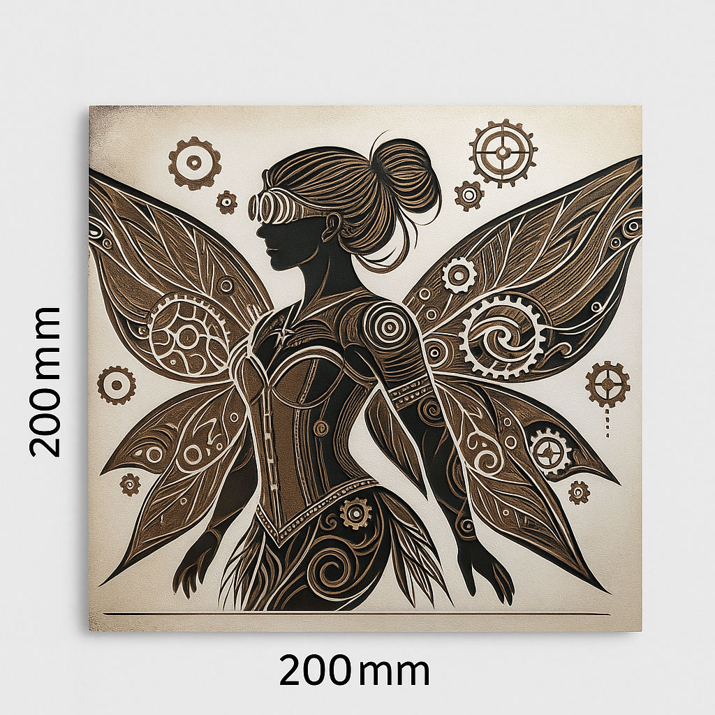 Bring a touch of fantasy into your space with this 200mm Steampunk Fairy wall art panel. The Steampunk Fairy features intricate tribal patterns and gear-driven wings, blending industrial design with mystical charm. This Steampunk Fairy artwork is a striking piece of décor, perfect for bookshelves, mantles, or gallery walls. Add the Steampunk Fairy to your collection and let this enchanting Steampunk Fairy transform your space.