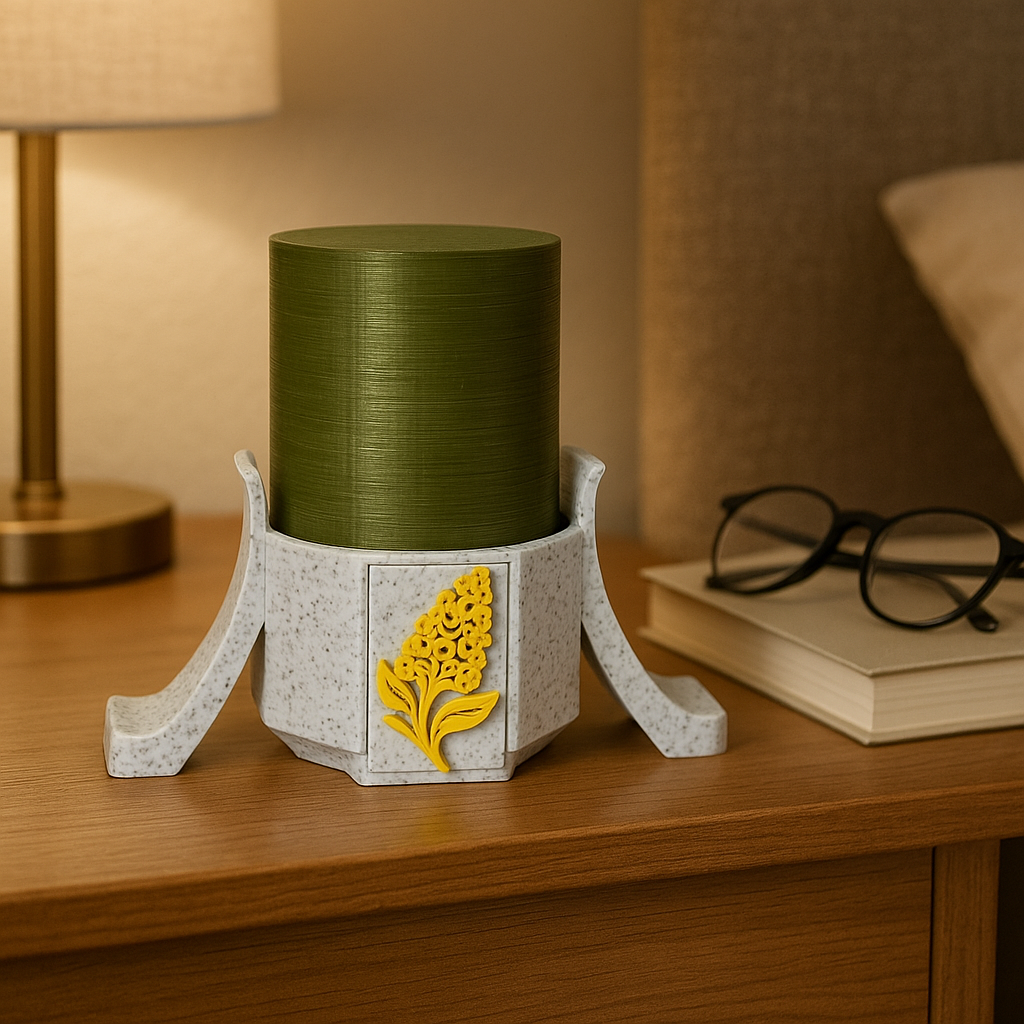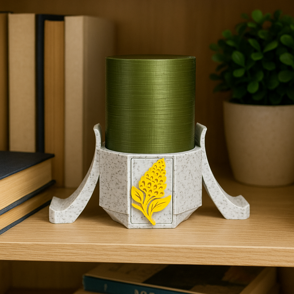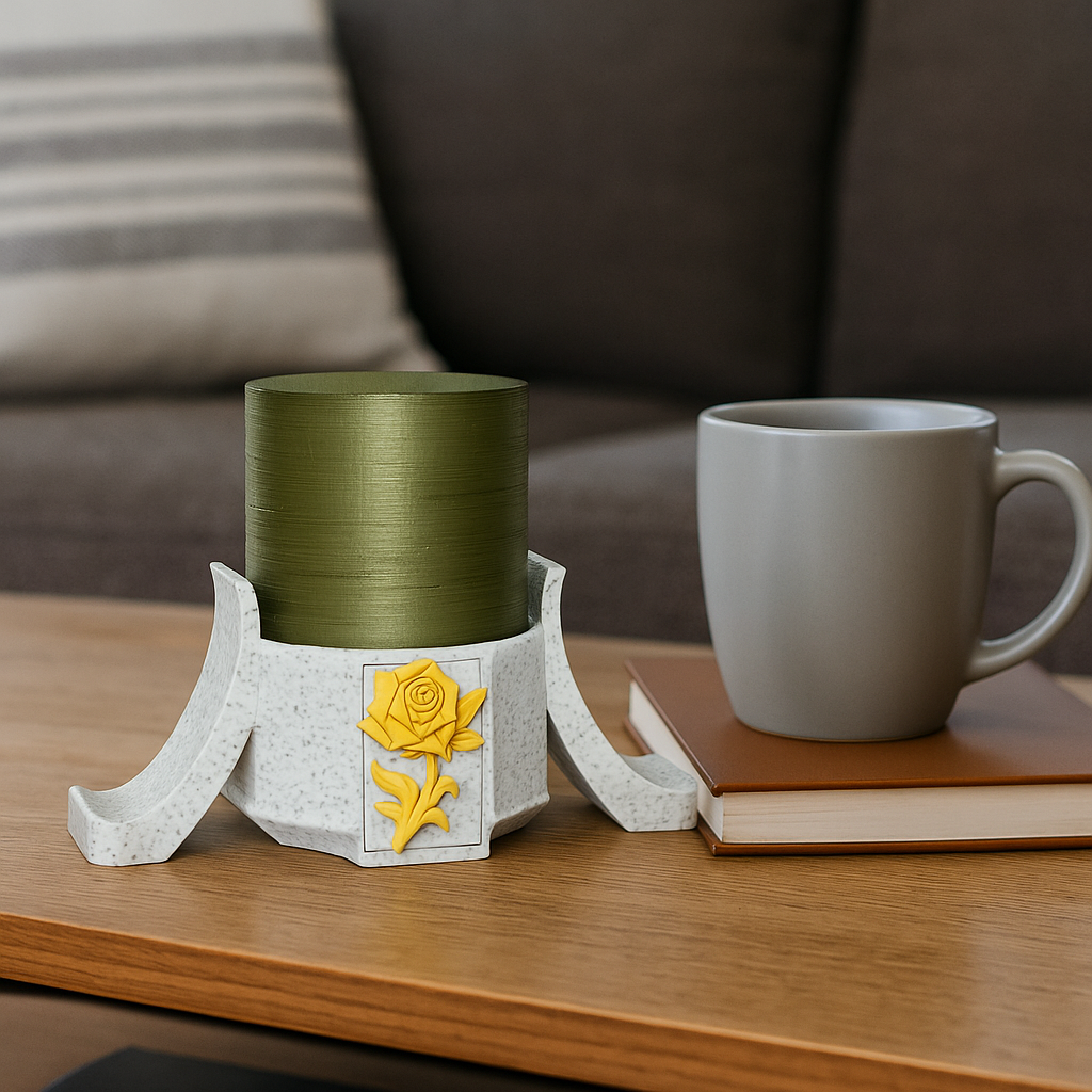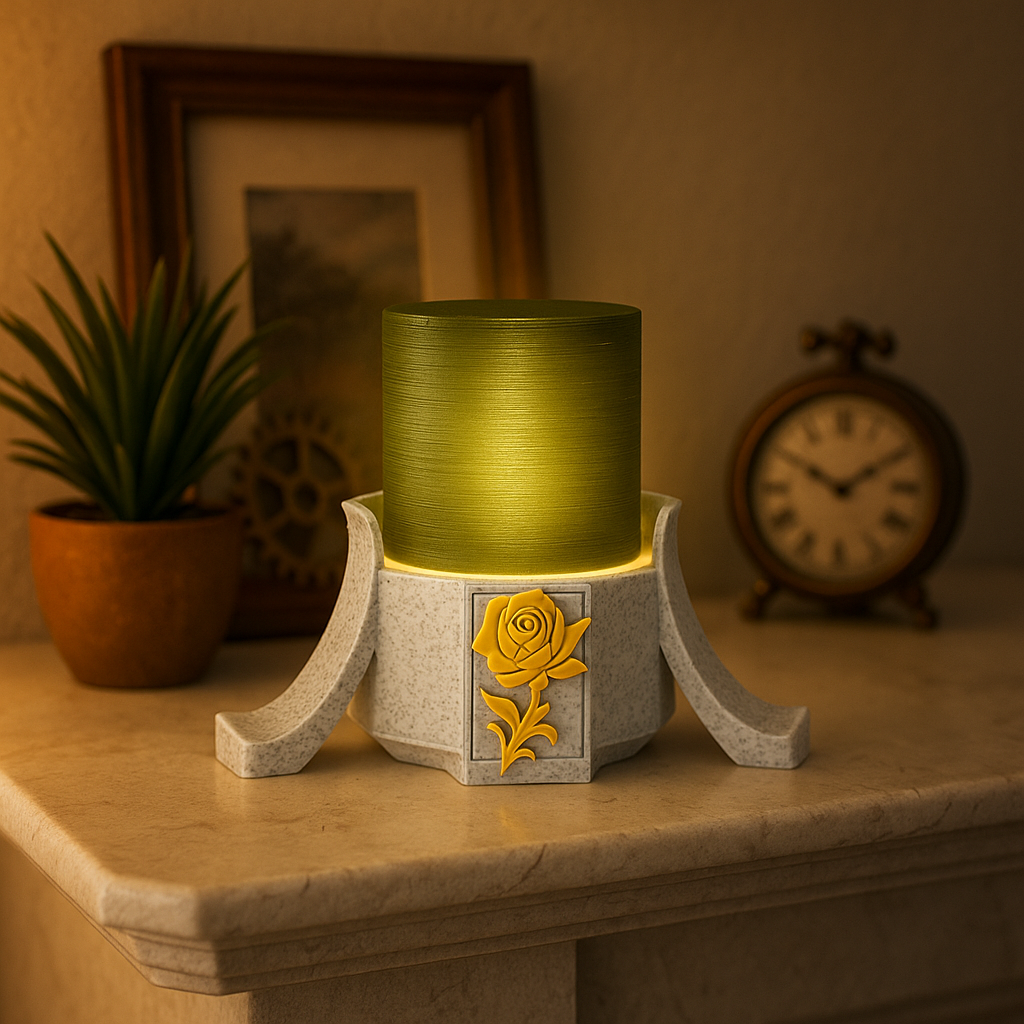 β’ Mystical Candle Holder with intricate 3D-printed floral design on marble base β’ Bright Yellow flower with Green cover β’ Mystical Candle Holder offering safe, flameless glow with LED candle β’ This Mystical Candle Holder adds a refreshing and mystical touch to any setting