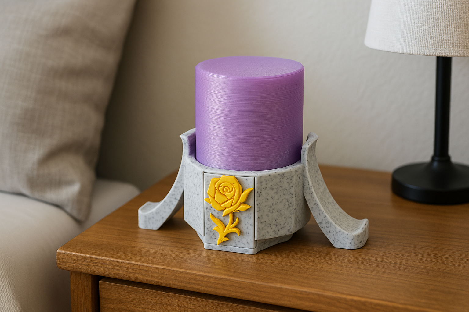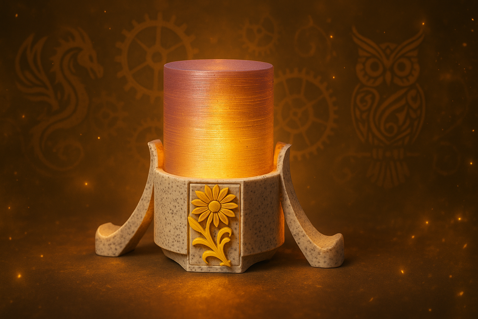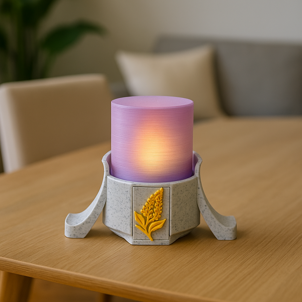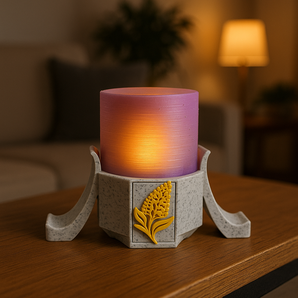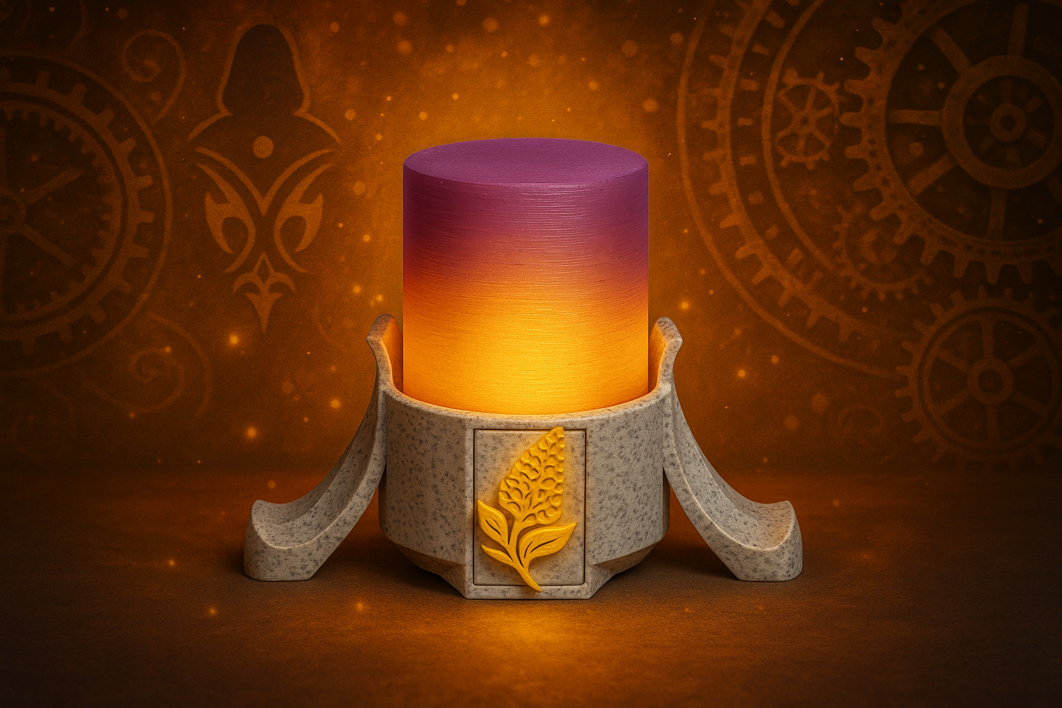 β’ Mystical Candle Holder with handcrafted marble base and detailed floral top β’ Vibrant Yellow flower paired with Purple cover β’ Mystical Candle Holder compatible with LED candles for safe ambiance β’ An enchanting Mystical Candle Holder addition to your mystical collection