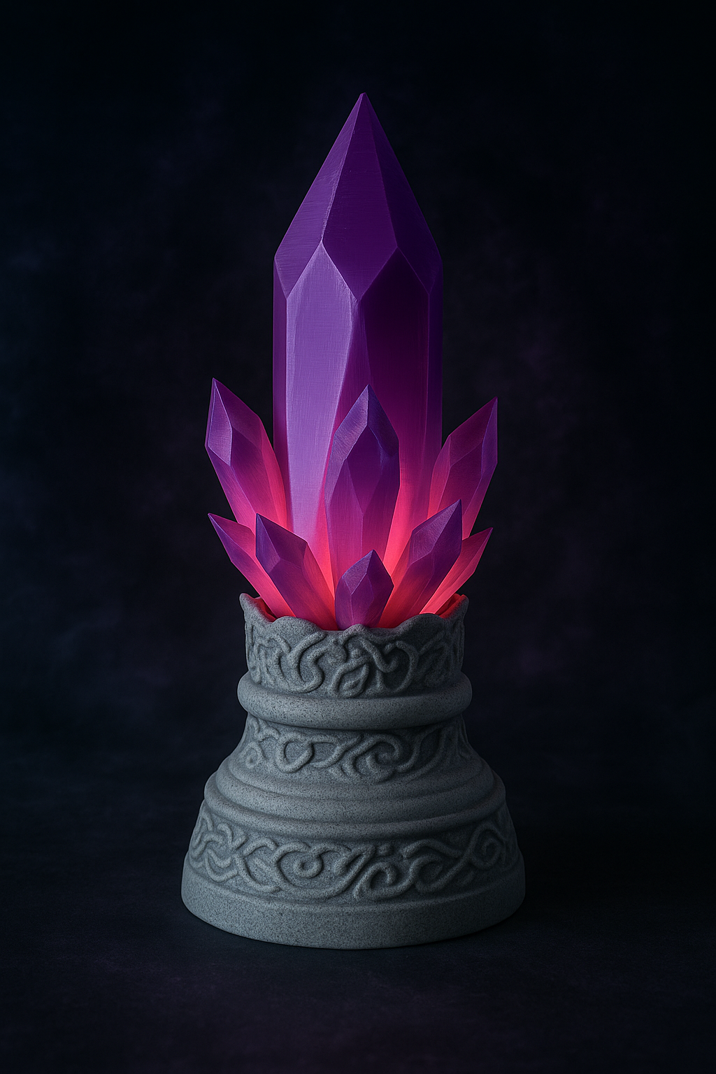 Forged in the quiet pulse between dusk and dawn, the Twilight Heart Crystal radiates with the vibrant essence of magic captured in form. The Twilight Heart Crystal core glows in a mesmerizing gradient of violet and rose—an ethereal warmth that dances across its faceted surfaces like living light. Resting upon a finely sculpted stone pedestal carved with ancient patterns, this Twilight Heart Crystal embodies balance between mechanical artistry and arcane wonder.