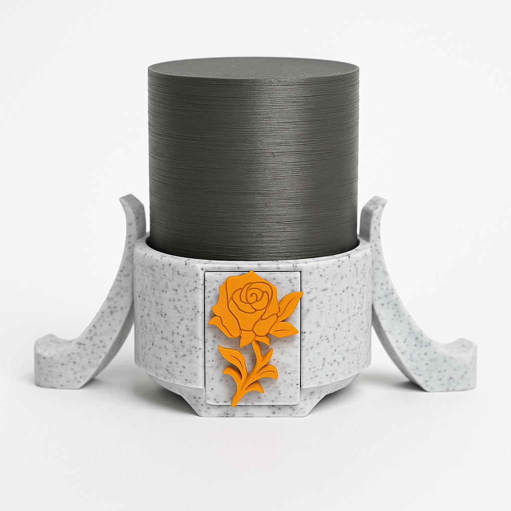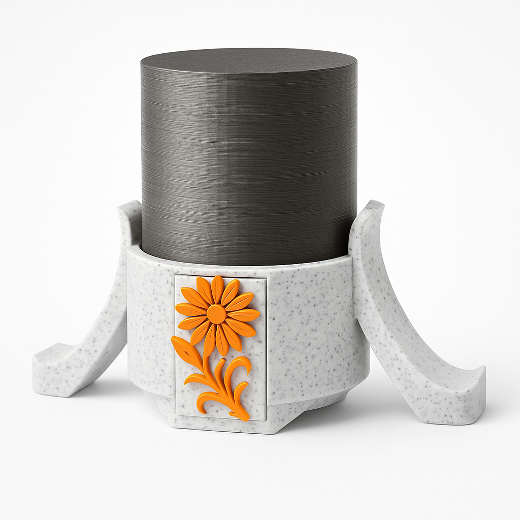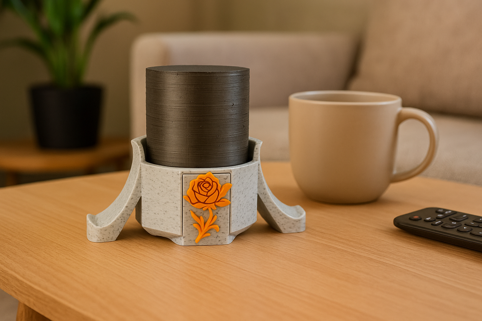 Mystical Candle Holder with charcoal cover and orange flower on marble base designed for LED candles