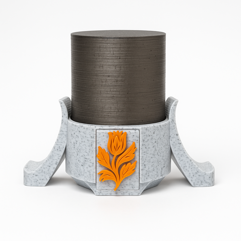 β€’ Mystical Candle Holder with solid marble base and artistic craftsmanship β€’ Striking Charcoal cover paired with a vibrant Orange flower β€’ Mystical Candle Holder designed for safe LED candle use β€’ A fiery Mystical Candle Holder centerpiece with mystical charm